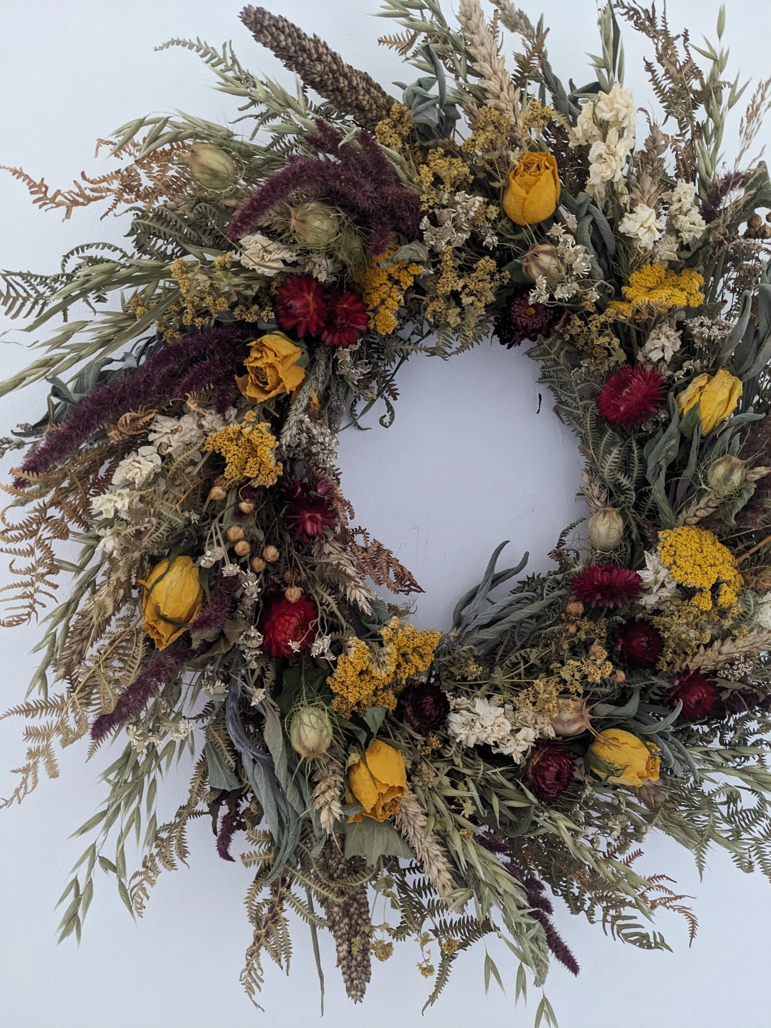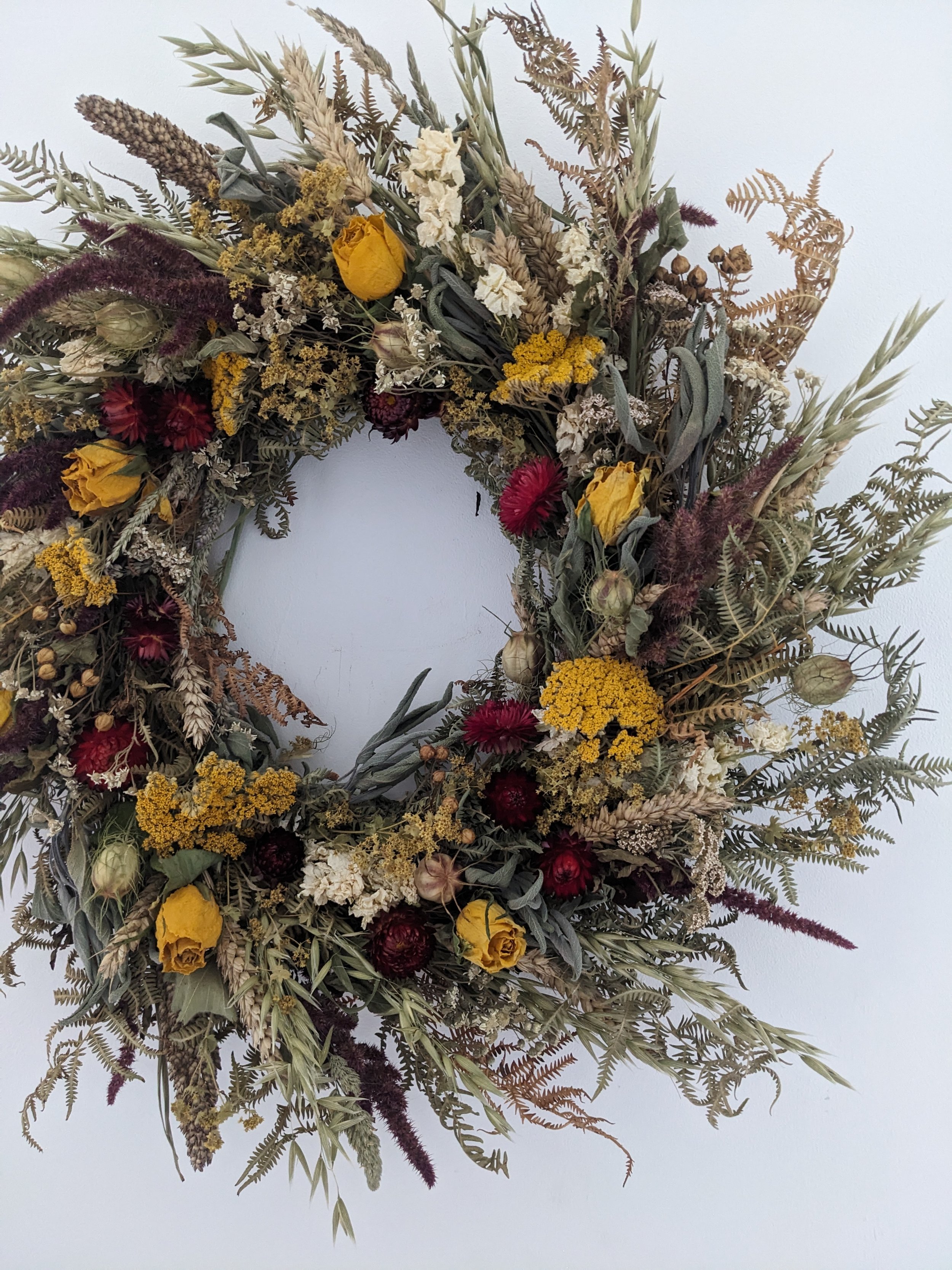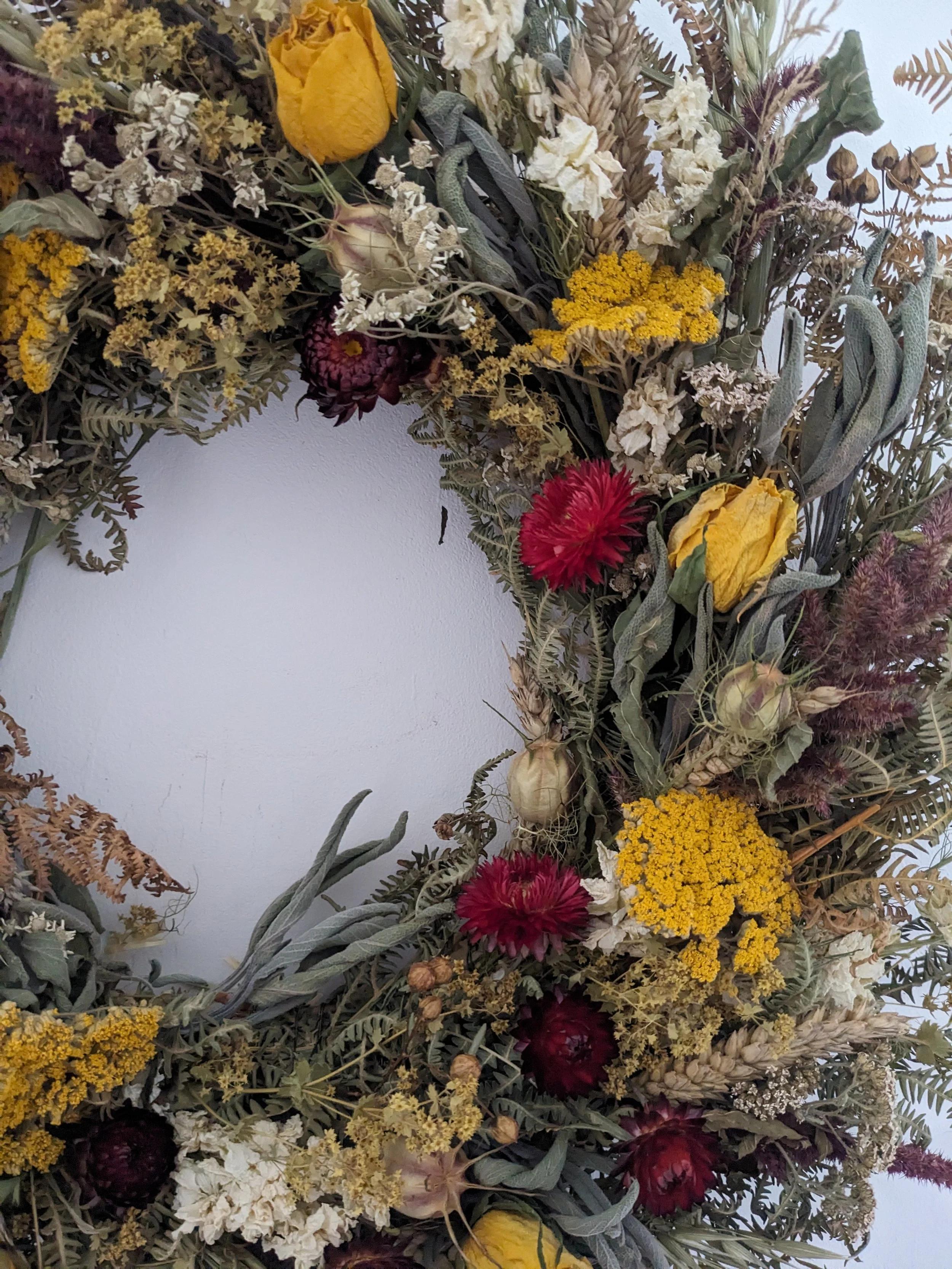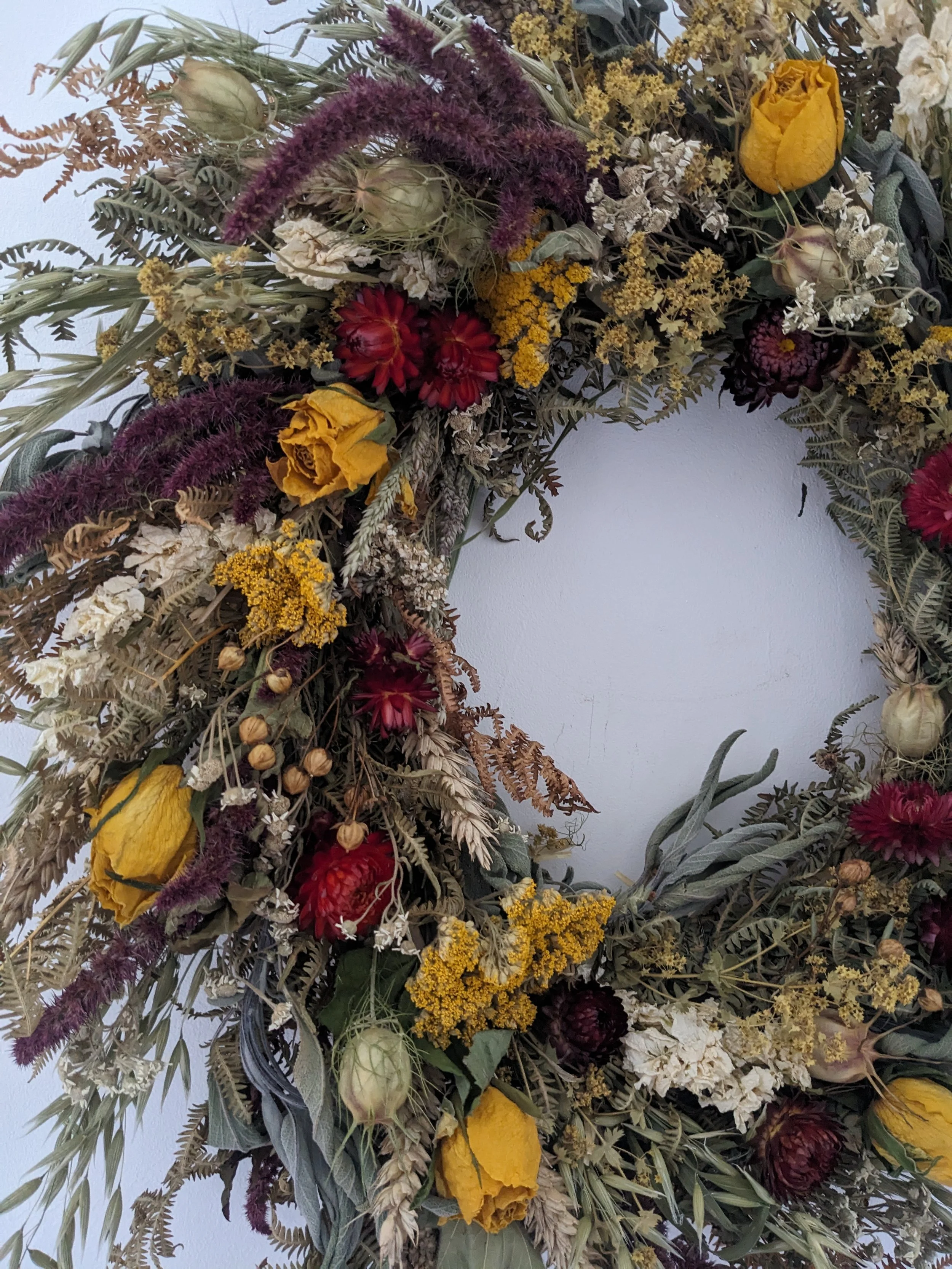 Flowers I use for my work are mostly grown and dried by me. The variety of flowers changing thorough the year with the seasons and growing conditions.