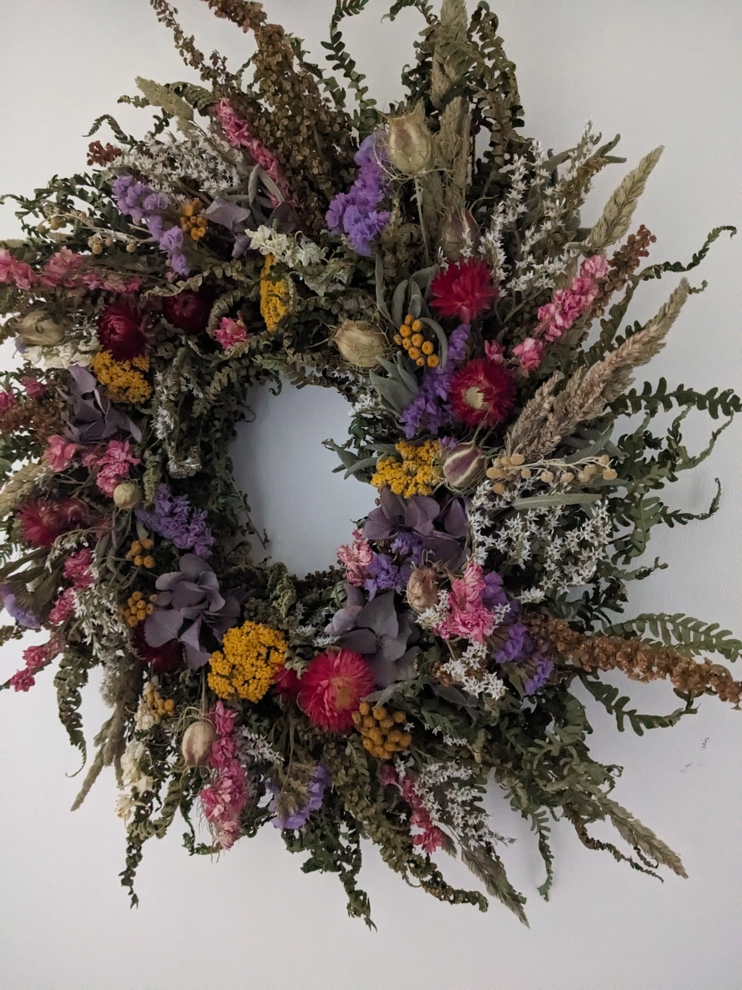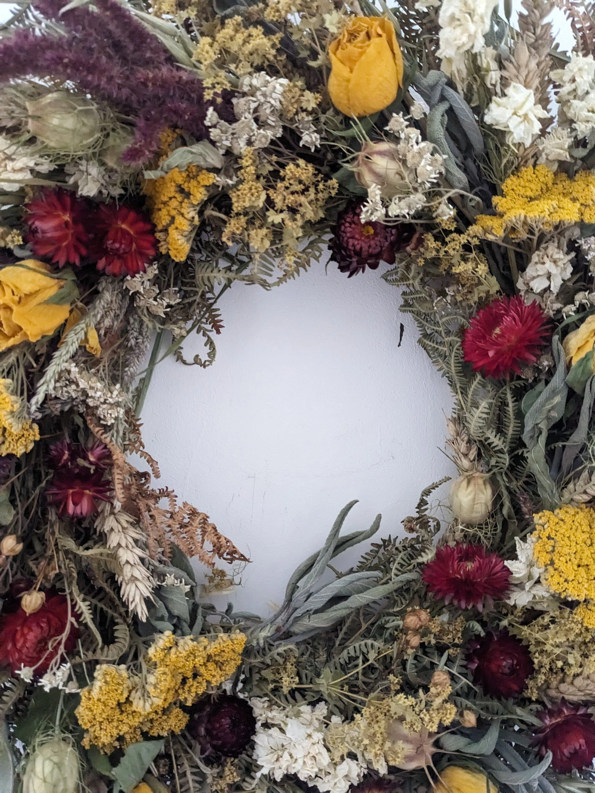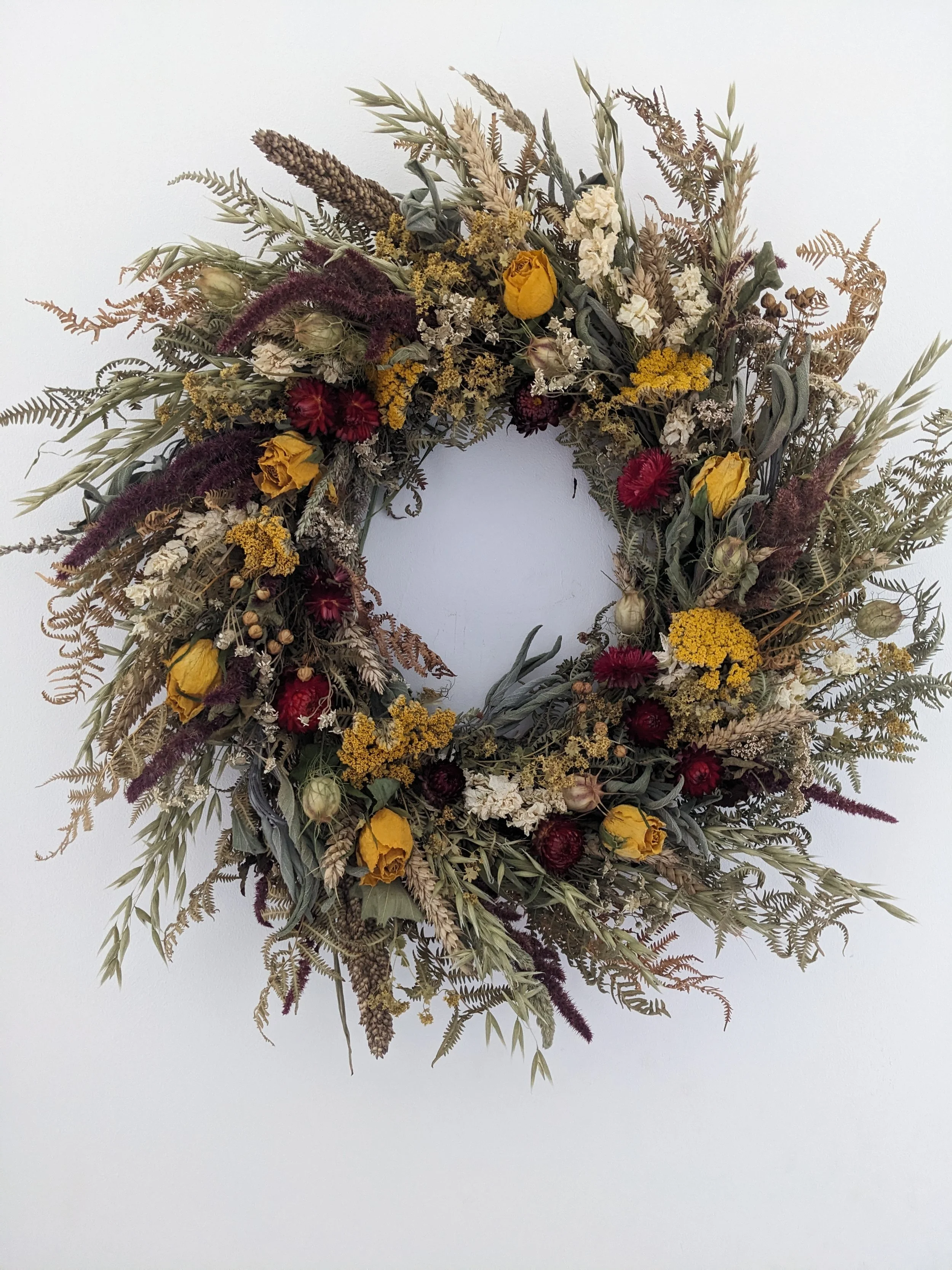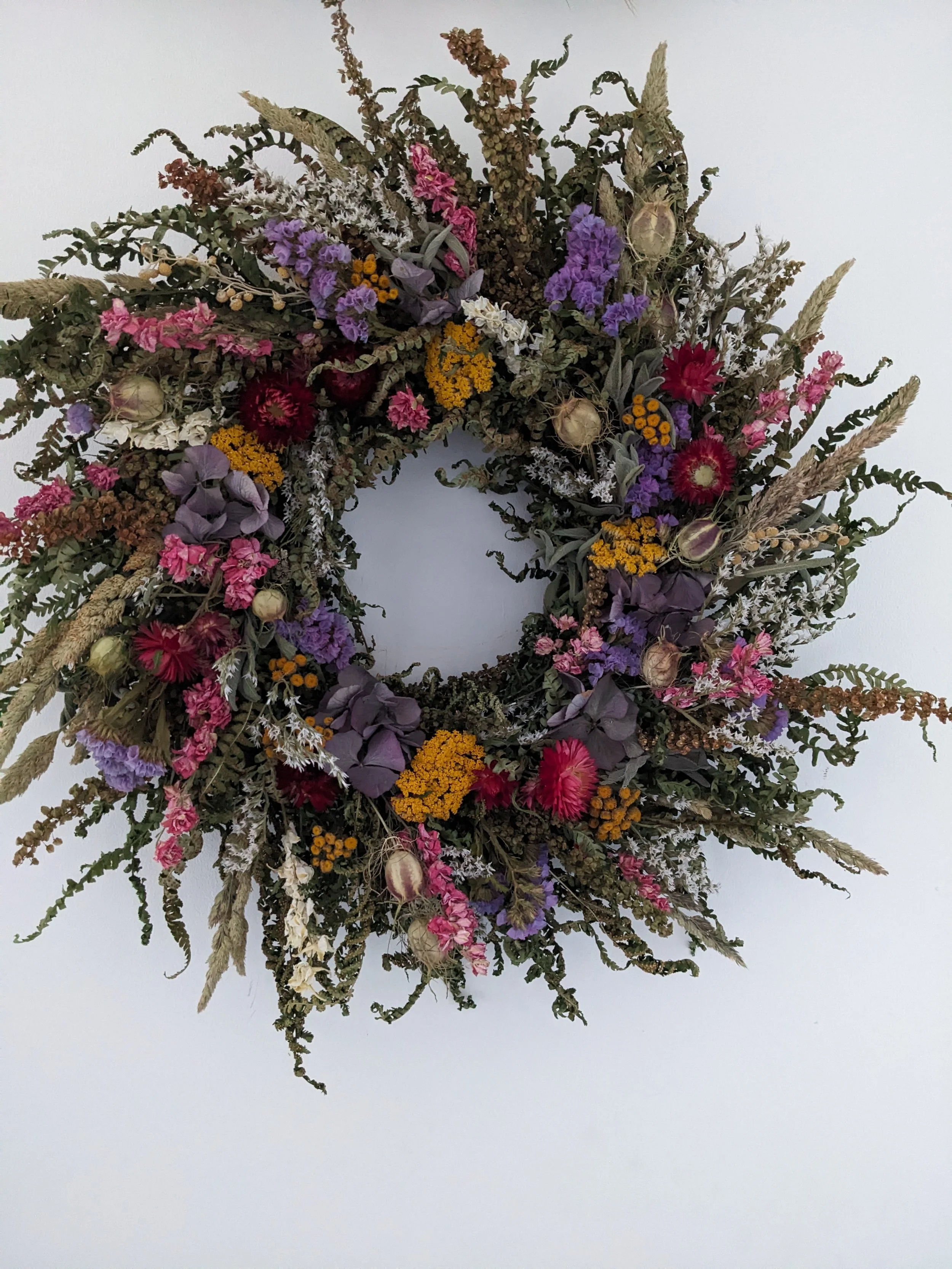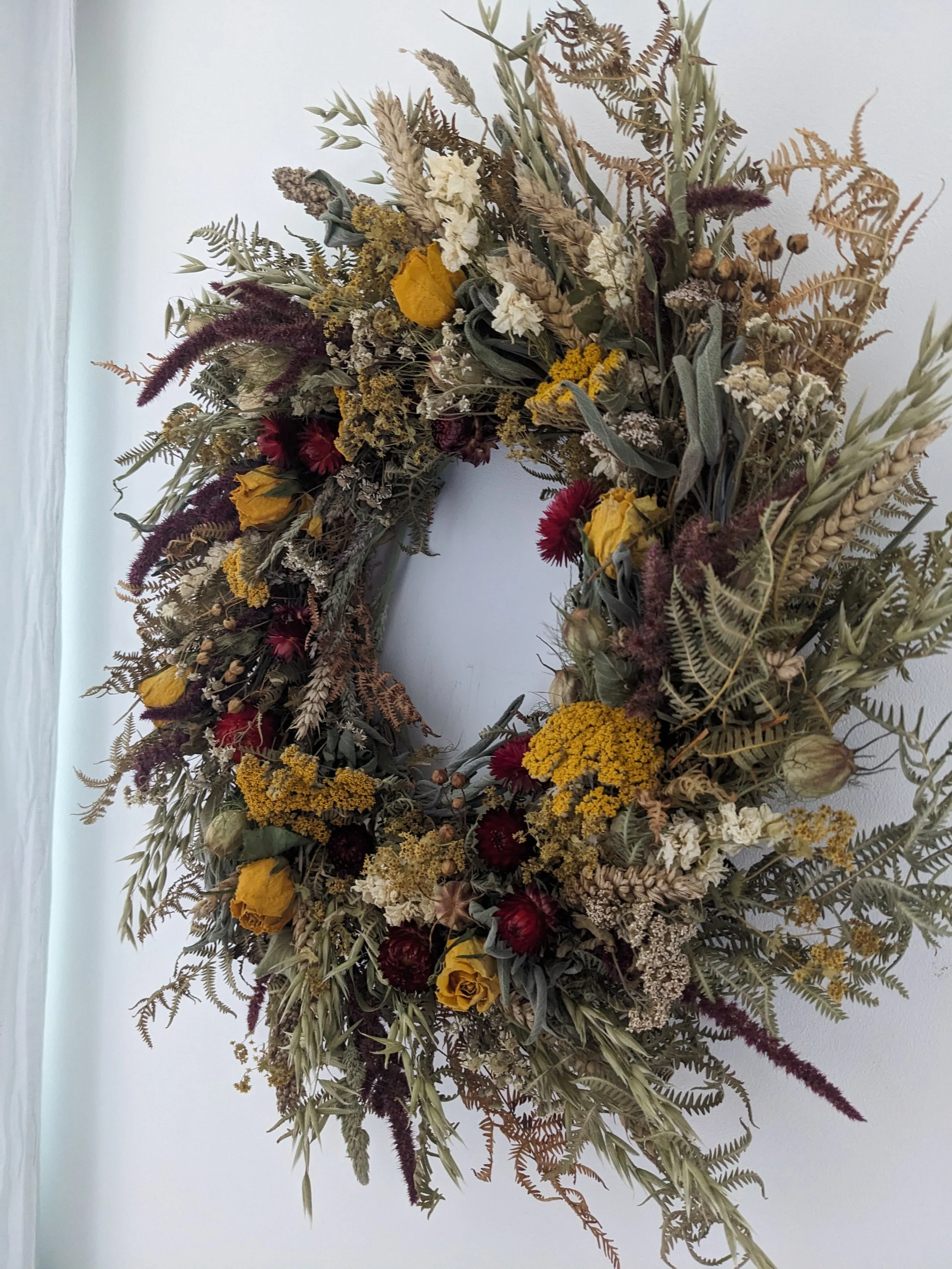 Flowers I use for my work are mostly grown and dried by me. The variety of flowers changing thorough the year with the seasons and growing conditions.