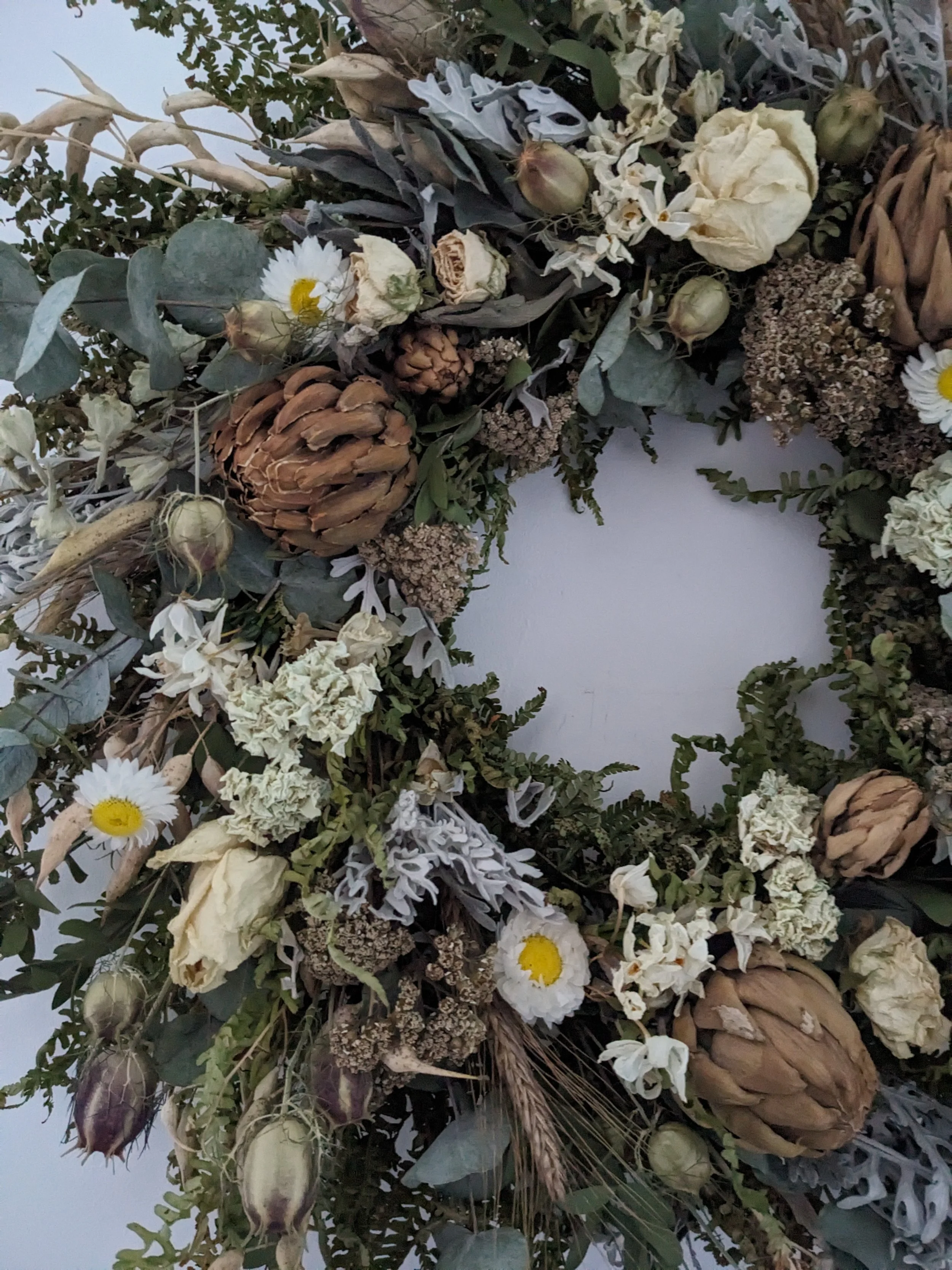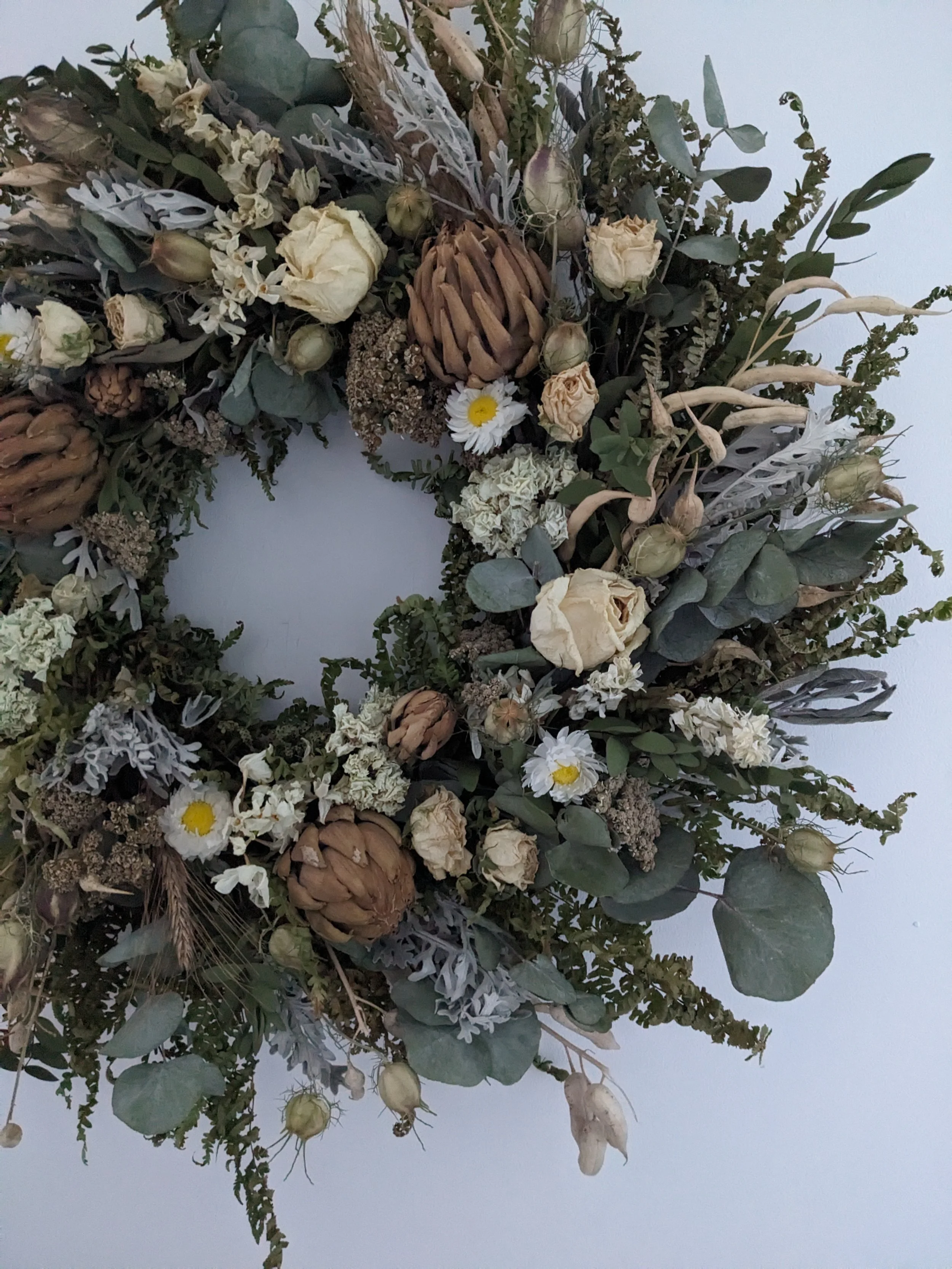 The everlasting wreath is made from all natural dried flowers. Please message me with your request and I will send you pictures ones the wreath is ready.